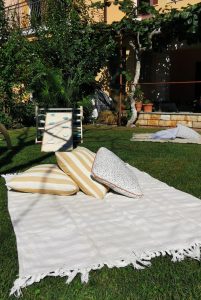 Picnic blankets and pillows on the grass were enjoyed by children and adults alike.
