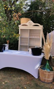 We had to provide and decorate tables and chairs, high tables, a bar, a sweet table…