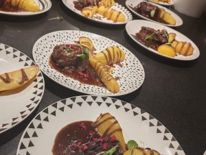 One of our specialties that we are always happy to prepare are beef cheeks. This time we decided to make it a little more complicated, so we added teriyaki sauce and hydrated raspberries. The side dish was potatoes, and it seems to us that this dish was the favorite of the evening.