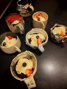 For dessert, a complete surprise, chocolate fudge with ice cream, toppings and forest fruit coulis.